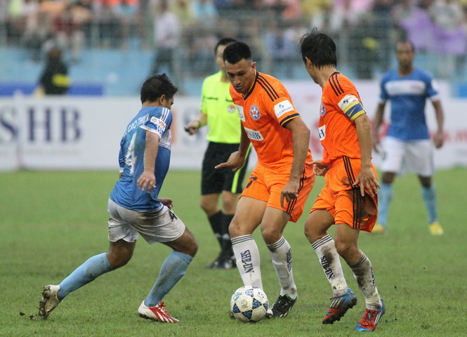 SHB Đà Nẵng (áo cam) muốn có điểm trước Kelantan. Ảnh: H.Q